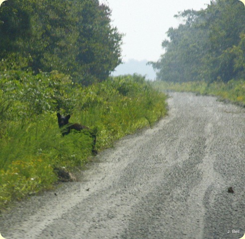 As we were going down one of the back roads, I caught sight of a bear walking down the road quite a distance in front of us. We moved up closer to try to get a shot through the front windshield, but he didn’t hang around for very long. No chance for a nice close-up, but I was relieved that at least we had seen a bear.