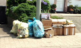 I have to say that I think Japan is the most stringent when it comes to recycling (kind of have to be when you live on an island), but Germany is a pretty close. I realized very quickly that Americans are trash whores. We have ginormous trash bins that are usually full every few days. Here, trash gets picked up every TWO WEEKS in a bin half the size of those in the states. I can fit 2 bags with the lid closed. It's annoying, but it has taught me to be very mindful of what I throw away. On the weeks opposite of trash pick up is recycling pick up. We are mandated to separate our recycling into 3, sometimes 4 ways: